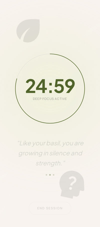 The motivation for this project stems from increasing concerns regarding the psychological effects of excessive smartphone usage, which has become a growing issue in contemporary society. Numerous studies have highlighted the negative consequences of prolonged screen time on attention, stress levels, and overall well-being. While indoor gardening has been widely recognized as a beneficial activity for stress reduction and mental health, the project explores the potential of transforming the act of growing basil from a passive activity into an interactive mechanism that encourages self-regulation.